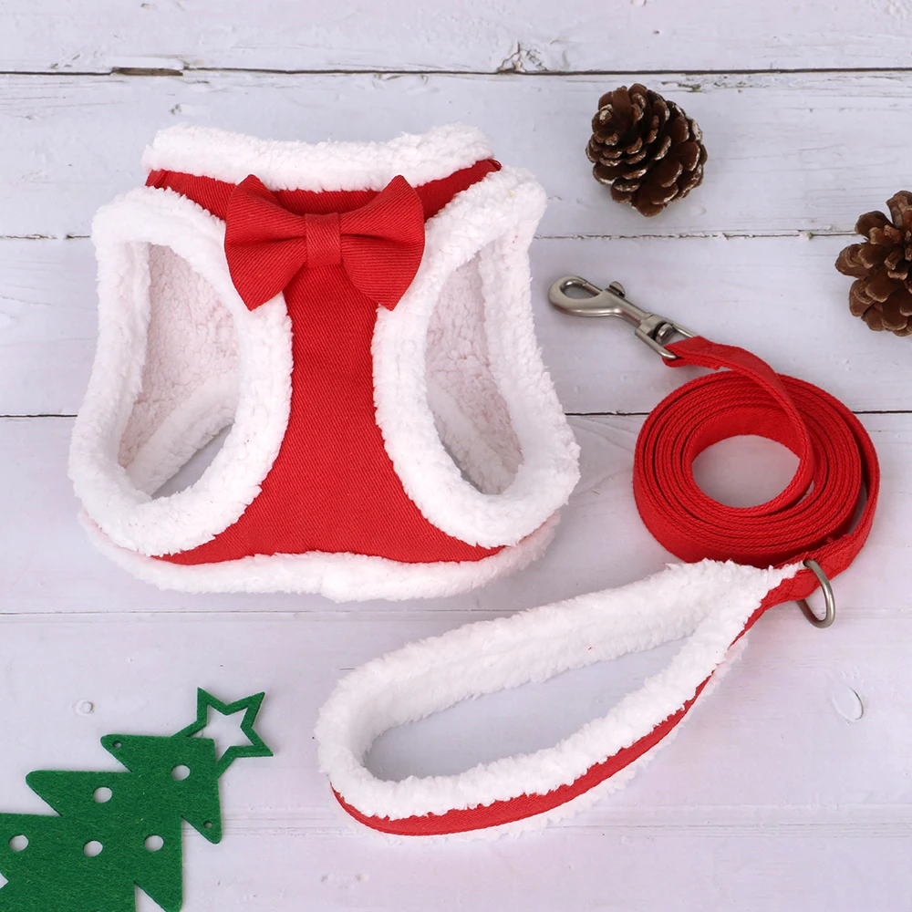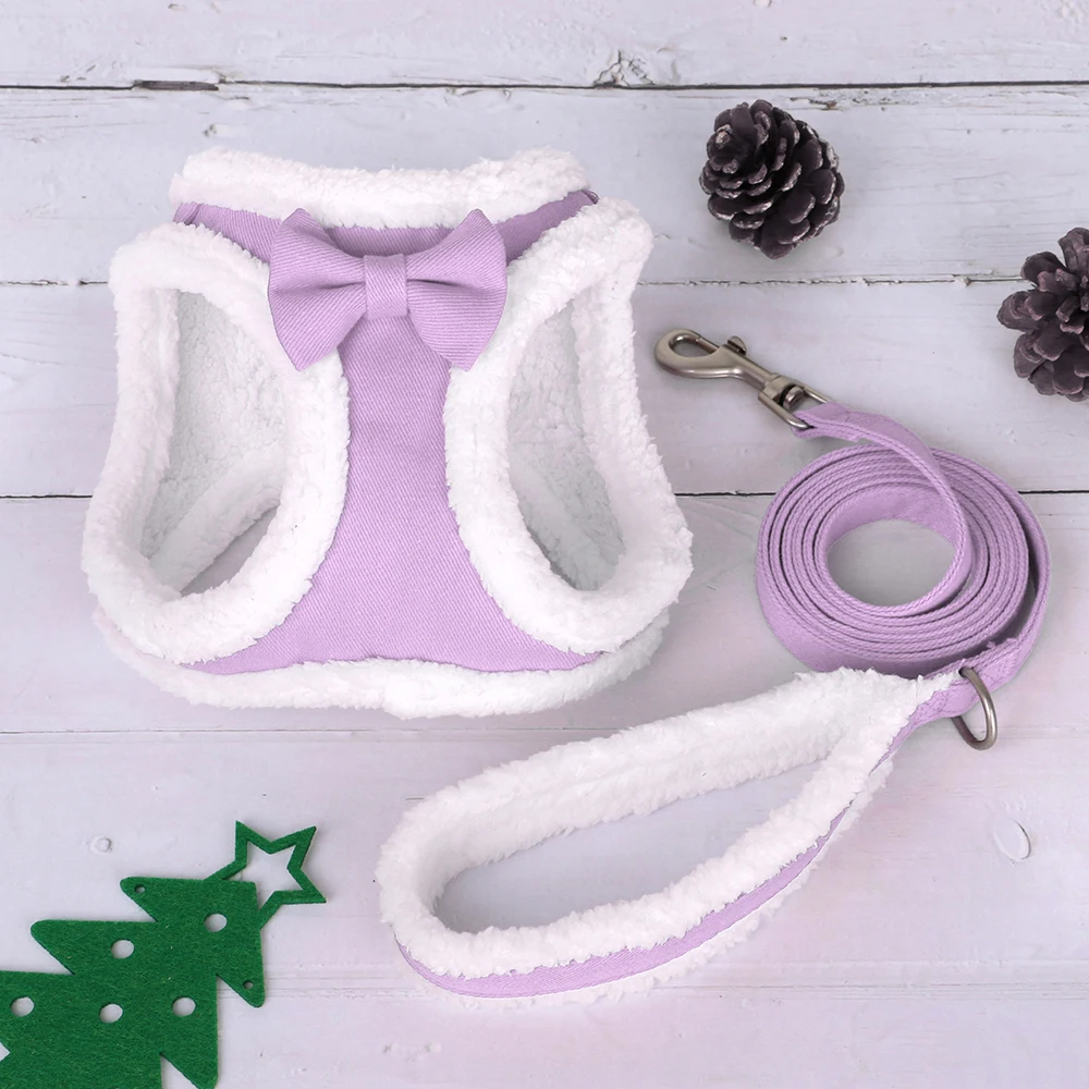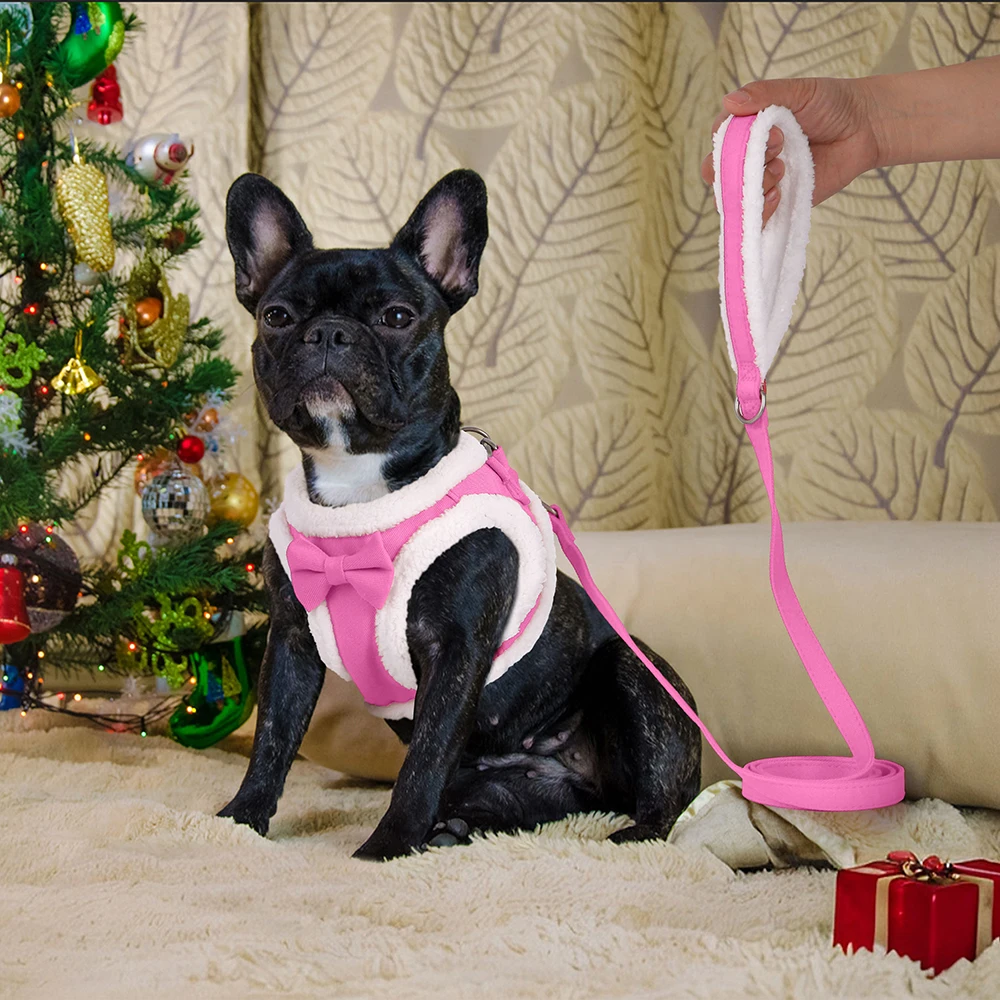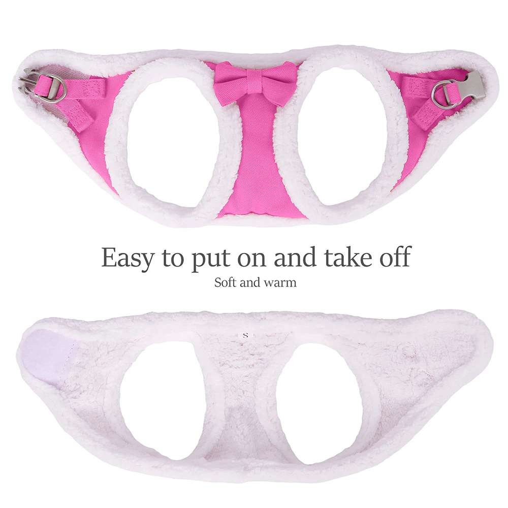 Type: Winter Warm Dog Harness Leash Set Soft Fleece Pet Harness Vest With Cute Bowtie for Small Medium Dogs Chihuahua Walking Belt