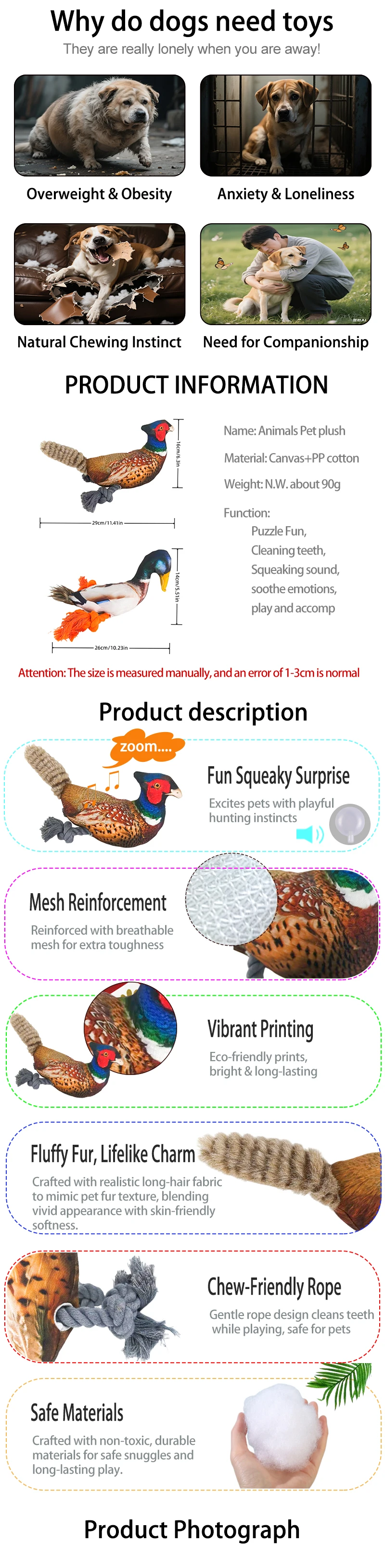 Durable Chew Toy for Dogs, Interactive Pet Companion, Chewable Plush Toy