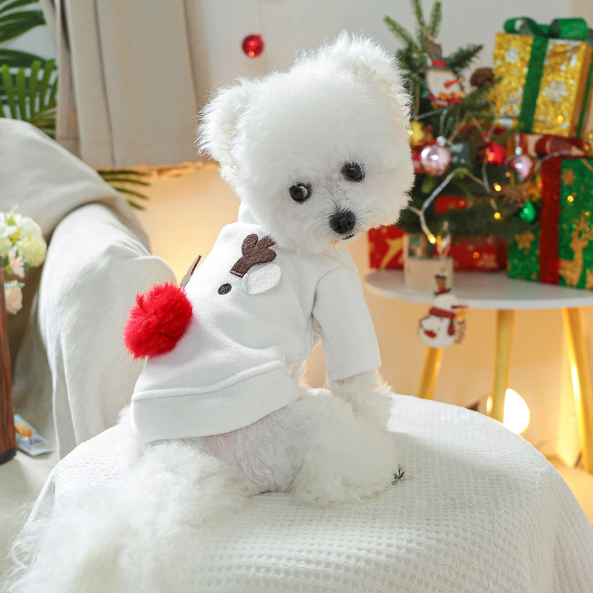 1PC White Big Red Nosed Elk Short Shih Tzu Clothes