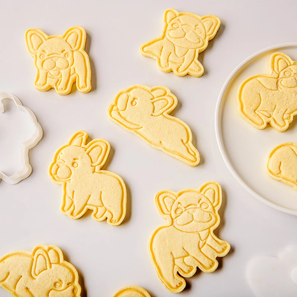 Cute Bulldog Dog Shaped Cookie Cutters Mold Biscuit Baking Tool Kitchenware Bakeware DIY Tool for Kids Hand Mold